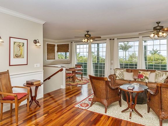Also included: BBQ w/gas grill, large yard with fruit trees, (lichee/guava, citrus), covered lanai/patio spaces for relaxing upstairs & on the ground level, as well as a covered garage that fits two cars & ample parking for up to 5+ cars in the driveway. Monthly yard service is included.