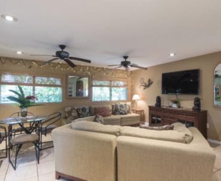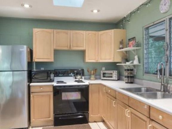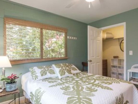 This lovely 2 bedroom 1000 sq ft home sits directly across the street from Three Tables Beach. Lull yourself to sleep at night with the sound of the lapping ocean waves. The home is surrounded by lush tropical landscape, papaya trees, bamboo, etc. BBQ exquisite, island fish, meat, poultry or local vegetables in your back yard, underneath our ancient mango tree. Skylights warm the large, fully equipped kitchen as well as the bathroom. Trade winds keep you cool all year round along with ceiling fans, no need for A/C here! Perfect for the right people. Serious only. Come enjoy the summer at Waimea Bay and watch the dolphins and sea turtles play! Tenant pays electric, internet, water. Approx. $300/mo