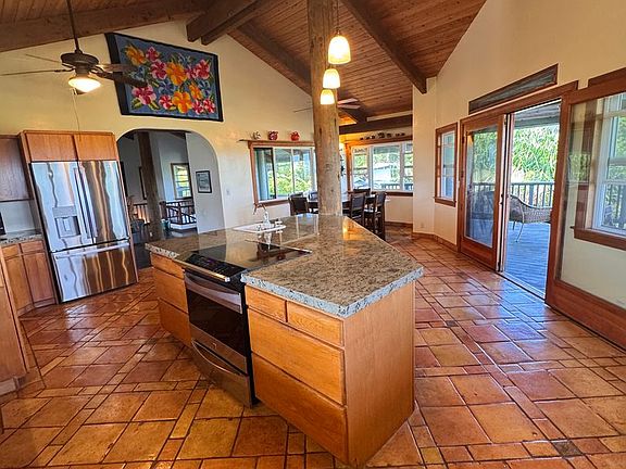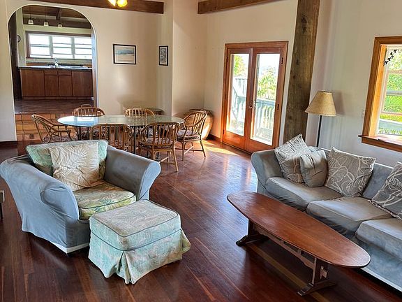 Beautiful stand alone home directly across Three Tables and within a minute's walk to Waimea Bay. This custom built, quiet, breezy home is in an ideal location for North Shore living. Close to bike path, large decks all around allow for ocean views of Kaena point and beautiful sunsets. 3 bedrooms with a large bonus room downstairs that can be used as a den or 4th bedroom, split AC in primary bedroom upstairs. Lots of storage, large laundry room with indoor washer dryer. Full kitchen with stainless appliances, large yard in back with views of the mountain and large yard in front allowing ample parking. Use of furniture upon request. Please note garage use not included. Deposit required, 1 dog negotiable, smoking or e-cigs/vapes allowed. 6-12 month lease. Tenant to pay water, electric and cable, and base rent + GET.