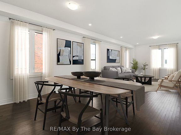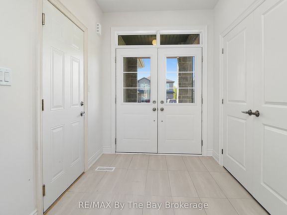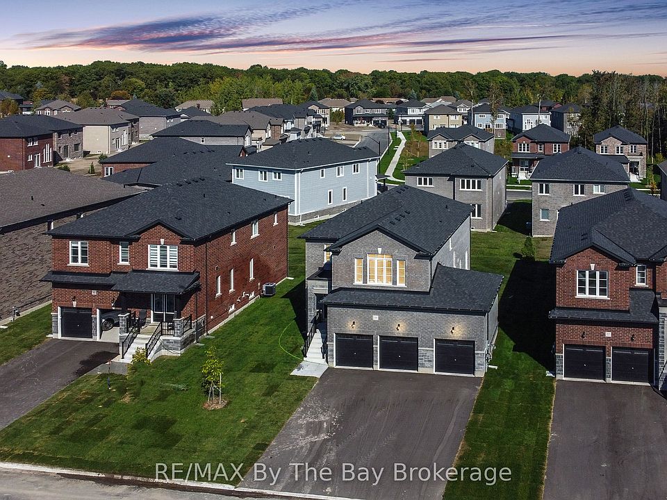 Welcome to 59 Amber Drive, boasting all Brick & Stone home with triple car garage. This stunning move in Pine Model in the sought-after Villas of Upper Wasaga (Phase 4). Set within the peaceful, final master-planned phase of Baycliffe Communities, this enclave is a private pocket of quiet streets and natural surroundings . Step inside through a covered front entryway to a spacious foyer leading into a bright open-concept living and dining area with gleaming hardwood floors, pot lights, and 9-foot ceilings. Large windows flood the main floor with natural light, while the upgraded kitchen showcases white cabinetry, granite countertops, a large island, and a walkout to the rear yard perfect for entertaining or family living. Upstairs, discover four spacious bedrooms and three-and-a-half bathrooms, including two private ensuites and a Jack & Jill bath shared by the remaining bedrooms. The primary suite offers a generous walk-in closet and a luxurious 5-piece ensuite with a glass shower and double vanity. Additional features include wrought iron spindles, upgraded tile and hardwood, main floor laundry, rough in for a electric car charger in the garage. A convenient side entrance leads to the unfinished basement, offering potential for a private suite or future customization. Located just minutes from Wasaga Beach's shoreline, schools, shops, and trails, this home delivers the perfect balance of luxury, comfort, and lifestyle all in one of Wasaga Beach's most peaceful and private pockets.