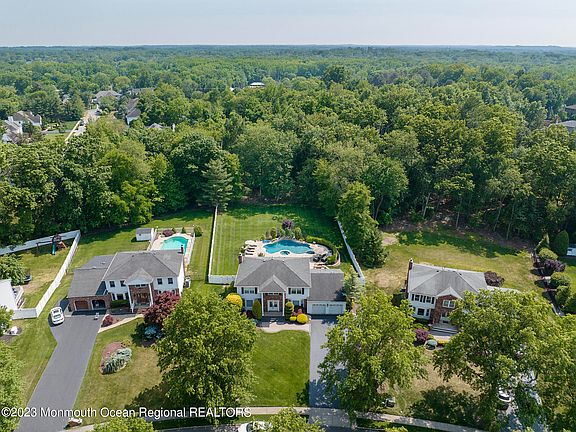 IT DOESN'T GET ANY BETTER! This 5 Bedroom Home is Shown with Pride! Situated on over an Acre in DESIRABLE BALMAR WOODS in Northern Manalapan. 1 Bedroom/Office w/built-ins on 1st Level and 4 SPACIOUS Bedrooms on 2nd Level. Family Room with Wood burning Fireplace situated conveniently off Kitchen. Perfect for Entertaining. GORGEOUS newer Kitchen offering 42''Custom Cabinetry, HIGH-END Stainless Steel Appliances, Silostone Countertops.  Wait till you see the fully fenced COUNTRYCLUB Backyard! GORGEOUS INGROUND GUNITE SALT WATER POOL & PAVER PATIO, Outside Kitchen for your summer entertaining. You are going to LOVE Soaking up the Sun back here! Full finished Basement. Also included is new (2023) full house generator! Great Manalapan school system, Great location! Just waiting on the wonderful new owners...Could that be you?!?