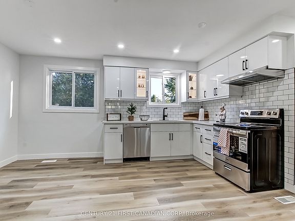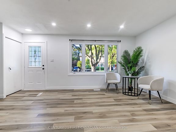 Step into a stunningly renovated semidetached house where every detail has been thoughtfully curated to harmonize functionality and contemporary living. Natural light pours through a big window in the inviting living room finished with sleek new plank flooring and crisp neutral paint colours with lots of pot lights. The open concept kitchen and dining offering an inviting ambiance for gatherings on the new custom kitchen featuring custom cabinetry, double edge quartz countertops, a stylish backsplash, new stainless-steel appliances and upgraded pot lights. Upgraded main floor bathroom. Three good size bedrooms upstairs with the updated main bathroom with a new custom quartz vanity, tiled new tub and new flooring and accessories. Basement expands your living space with recreation room ideal for media entertainment or home gym. More big items updates: New Furnace, AC, washer and Dryer just installed, Roof 2017, electrical panel, mirror closet doors, door nobs, hinges and all accessories. Large private backyard with stone pavers patio spanning the width of the property. This home is conveniently close to HW401, schools, shopping, parks, and transit, making it perfect for modern family living in truly move in condition.