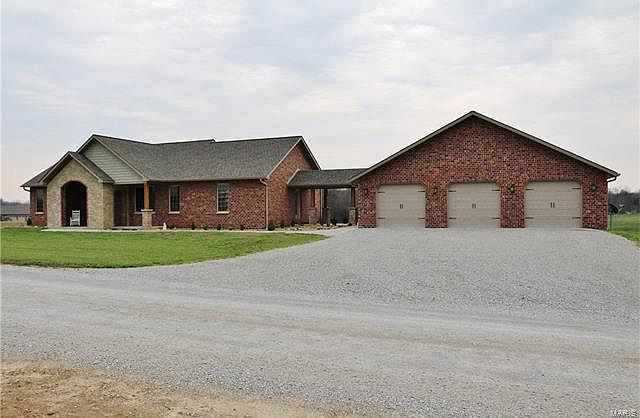 If you've always wanted room to ramble come to this delightful 4 bedrooms, 3 full bath brick ranch home built in 2014. Lower level offers 2 bedrooms, walk-in closets, family room with gas fireplace, and walks out to a concrete patio. Upper level offers a large Master suite with adjoining bath, another large bedroom, 2 full baths, large laundry room, open floor plan with kitchen, dining and living room. Breezeway separates your 3 car main level garage and also offers lower level 3+ car garage. All of this is sitting on 4.57 ac +/- with pond in rear of house. (The pond does touch other property owners.)