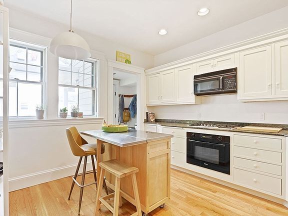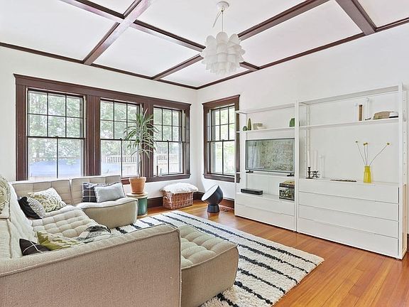 Welcome to this magnificent 5 bedroom, 2 bathroom townhome with 9 rooms that feels like a single-family house. Designed by the well-known architectural firm Newhall & Belvins at the turn of the century, this home boasts oversized windows, high ceilings, and period details that showcase their design elements. You enter this home through the heated sunroom which leads to a bright living room with a wood-burning fireplace and built-in bookshelves, facing the east. The dining room is equally impressive with its beamed ceiling and decorative fireplace. It leads to a modern eat-in kitchen, a full bath, and a mudroom that provides access to a private fenced yard. The second floor features four corner bedrooms and an updated bath. The primary bedroom is privately located on the third level. This house is situated in one of the most coveted locations in Arlington, just a few steps away from Whole Foods, Mass Ave, and other amenities. Offers due Monday at 6:00 PM. First showings at the OH.