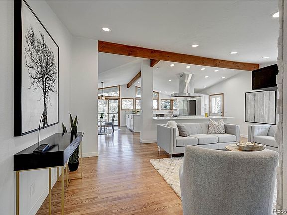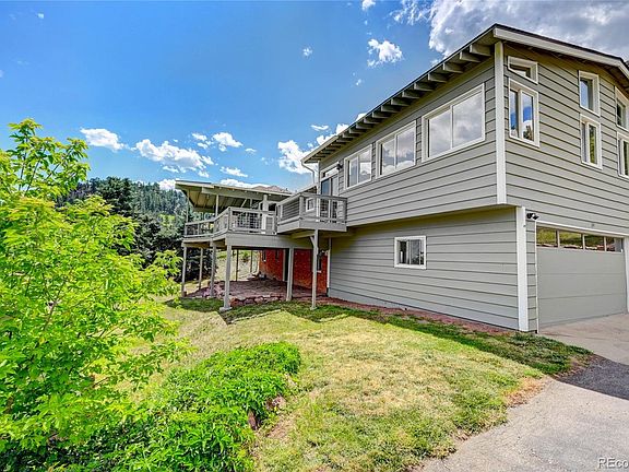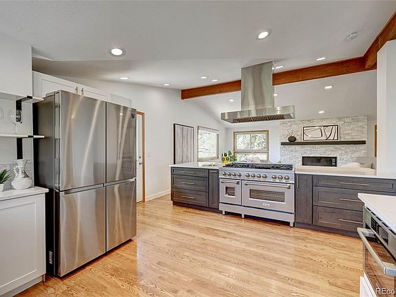 This amazing, hidden gem in Pine Brook Hills is absolutely stunning. Soak in the sunrise while sitting on the huge covered deck (on three sides of the house) with stunning views of the mountains, city, valley, and trees. You feel like you are on top of the world. Breathtaking! This updated ranch with a walk-out basement boasts 5 bedrooms (one non-conforming), three totally remodeled bathrooms, and a small office. It even has a main floor laundry with a washer and dryer. This home has a very spacious, open floor plan with extensive hardwood floors, vaulted ceilings, skylights, and windows everywhere. The large great room with a gas fireplace opens to the kitchen and is perfect for entertaining. The huge main floor primary bedroom with its walls of windows, vaulted ceiling, and deck access is the perfect place to rejuvenate. Brand new Interior and Exterior paint. You will want this house just for the kitchen! The completely remodeled Gourmet Chef's Kitchen with a 48" Zline professional dual fuel range, beautiful cabinets, quartz counters, and Stainless Steel appliances with a Bosch microwave, and dishwasher is gorgeous and opens onto the deck. The spacious lower-level family room has a fireplace, patio access, oversized 2-car garage. 5-minute walk to the Sanitas trail! Ranch. Private lot on .65 acres surrounded by lots that are similar in size, so it feels very private. Get the best of both worlds with less than a one-minute drive to Broadway. On a school bus route so roads are always plowed. Public water and septic tank. August 2023 Roof Certification. Immediate possession! VIRTUAL TOUR: https://v1tours.com/listing/47303