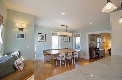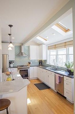 - Kit Dscrp: Main Level, Dining Area, Flooring - Hardwood, Countertops - Stone/Granite/Solid, Cabinets - Upgraded, Skylight, Breakfast Bar / Nook, Kitchen Island, Stainless Steel Appliances, Open Floor Plan, Recessed Lighting, Remodeled, Exterior Access, Gas Stove, Lighting - Overhead, Lighting - Pendant