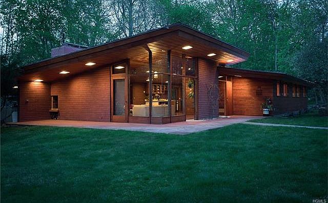 This home, designed by David Henken, a close associate of Frank Lloyd Wright, follows in Wright's tradition of organic aesthetic for mid-century modern architecture. Henken collaborated w/Wright on the Usonia project in Pleasantville. Environmentally friendly, the angled roof lines are low and sweeping w/solar orientation to capture warmth in the winter and to lock it out in the summer; simple yet elegant open floor plans w/walls of windows that integrate w/the outside and deep eaves to provide a reassuring sense of shelter w/carport instead of garage. The house echoes the natural surrounding terrain w/rustic materials that minimize a sense of separation. Extensive use of cypress, fluted glass skylights, glass corner-on-corner windows and exposed brick walls lend to the unique ambiance of this home. Updated w/a detailed eye toward preservation, the house has been artfully extended and modernized while maintaining the initial integrity. A self-cleaning 39' in-ground pool is a wonderful addition!