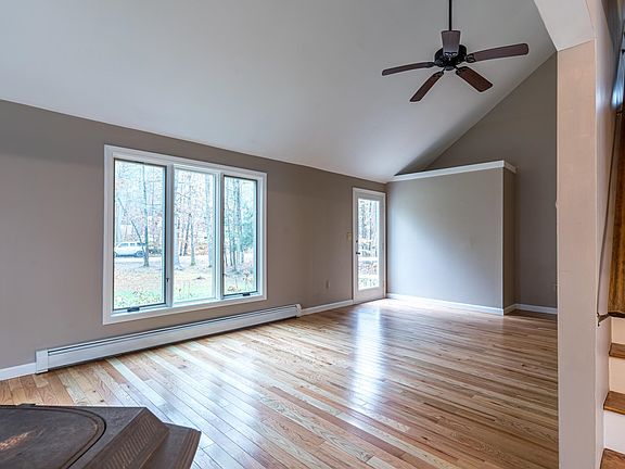 Looking for a 4 bedroom home on a large lot in the Oyster River district? Sitting on 2.3 acres in a neighborhood of similar homes, this home offers a large, level back yard and even has a deluxe chicken coop. The attached two car garage will easily fit your lawn & garden items too, with plenty of room in the driveway for visitors. Step inside and find gorgeous hardwood floors running throughout the public areas of the open floor plan. The living room has a vaulted ceiling, plenty of room to spread out, plus a hearth with a wood stove. The floor plan flows into the dining area that features a modern farmhouse accent wall and a slider to the back yard. The fully remodeled kitchen will take your breath away! With a walk-in butler’s pantry, custom tiling, granite counters, custom range hood, built-ins, and all the storage you could possibly want, this kitchen just begs you to cook! There are two bedrooms and a full bath also on the first floor. On the second floor, you will find two more bedrooms and another full bath. The primary bedroom also has a modern farmhouse accent wall, a built-in bookcase, and plenty of light. The full unfinished basement offers more storage, and there have been many improvements done besides the kitchen including multiple replacement windows, fresh paint, a new slider and more. Situated just a mile from Route 125, this home is both commuter and seacoast work friendly.