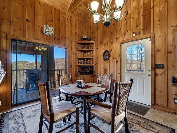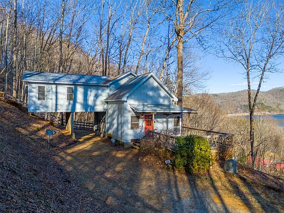 If you are looking for the perfect get away cabin with a view, then look no further. This 2/2 has a private location and a fantastic view of the mountains and Lake Glenville. The cabin style home features a covered screened in front porch and a sun deck. The galley style kitchen is both convenient and accessible with a pass through to the dining room. Moving up the stairs to the living room you will find the same wonderful views and high ceilings. With a second bedroom upstairs and a coffee beverage area, enjoy a great movie and never leave the comfort of the upper level. The home sits on 1.37 acres and has a fenced in yard for your pets or livestock. This property is unrestricted and priced to sell.