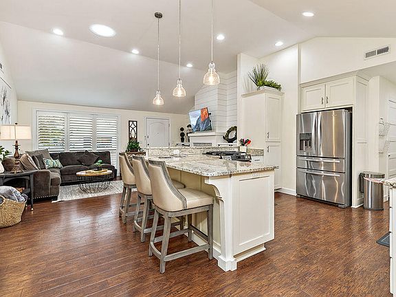 - Smart Lock(s), Breakfast Bar, Built-in Features, Ceiling Fan(s), Double Vanity, Enclosed Toilet(s), Fiberglass Stall Shower, Granite Counters, In-Law Floorplan, Primary Downstairs, Shower/Tub Combo, Soaking Tub, Tile Shower, Vaulted Ceiling(s), Walk-In Closet(s)