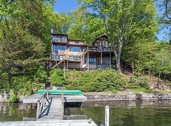 Million Dollar Views! 100' direct Candlewood Lake water front with amazing extensive views. Large open main level layout with great room to kitchen to living room to family room. Each room with full view of the lake. Details include 2 stone fireplaces, sauna, hot tub, 2 tiered deck, oversized 2 car detached garage with loft. 3 levels of lake living...time to relax and enjoy!