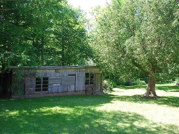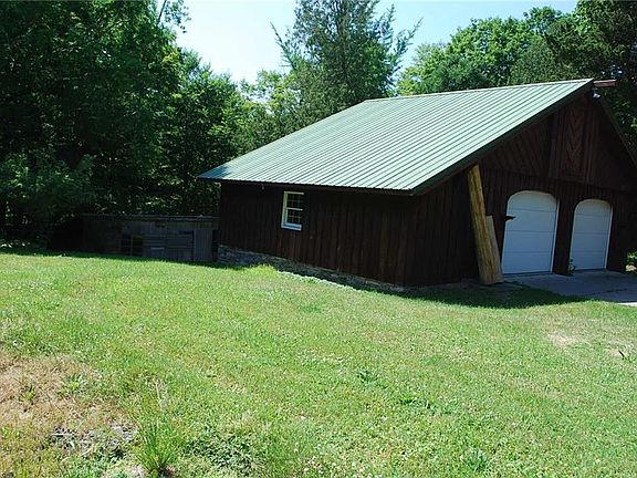 Lovingly maintained and updated colonial on over four acres with Catfish Creek running through the property - family owned for over 50 years -this home features a nice eat-in kitchen with custom cabinets and solid surface counter tops-built in oven and cook top with custom exhaust hood that vents outside-the wood stove in the kitchen could heat most of the 1st floor - two nice size bedrooms on the 1st floor along with a office all with custom built in cabinets - both full baths are on the first floor - the extra large living room has a 2nd wood stove with brick mantle - there are many big windows that overlook the back yard and creek -the two bedrooms on the 2nd floor feature knotty pine walls and ceilings and it appears to be douglas fir wood floors under the carpet - the full basement has two exits to the back yard - there is plenty of storage in the basement along an area set up for a woodworking shop