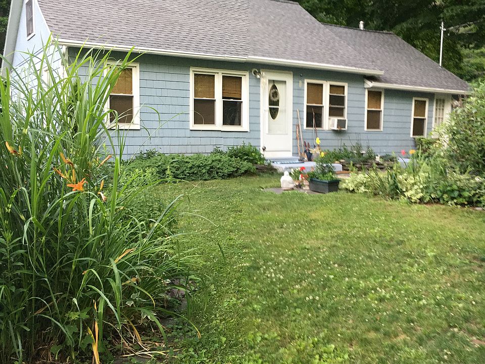 Beautifully renovated three bedroom cottage on nice country road with all new insulated low "E" glass windows, An open floor plan with large eat in kitchen with gas stove, refrigerator and dish washer, one bath room with a volume ceiling, a tub, pedal sink and two linen closets, a two section master suite (with two separate outside entrances) one in the front of the house and one in the rear going onto a large new deck. Also, there is a clothes washer and dryer. There are nice wood floors and a beautiful private back yard. There is a pull down stair case going to an attic space as well. There are ceiling fans in the living room, kitchen and two of the bedrooms. Also, there is a small garden shed in the back yard NO air b&b or sublets. Tenant pays all