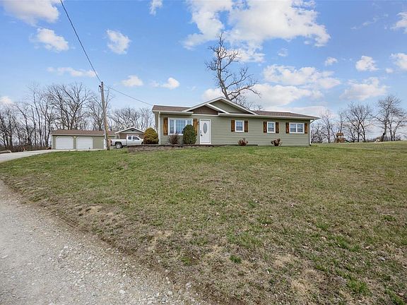 Welcome Home to this charming, Move-In Ready, well-maintained two bedrooms, one-bathroom home. Walking into the home features a large living space that flows into the dedicated dining space, a nice size kitchen, and a bonus great room in the rear (could be a third bedroom). From the great room, you have a sliding glass door that leads to the outdoor patio, where you can sit and enjoy your morning coffee with nature. There is a Detached Shop that is heated with two oversized parking spaces. It has 220 services, an insulated floor, two exhaust fans, and water. There is a woodshed with a wood stove to cut down on heating costs. This unique system will heat your home and shop, plus it can bypass the hot water heater and have hot water directly to your home. Towards the back of the property is another shed for extra storage. All this sits on 2 acres. A garden area perfect for growing vegetables in spring and summer.