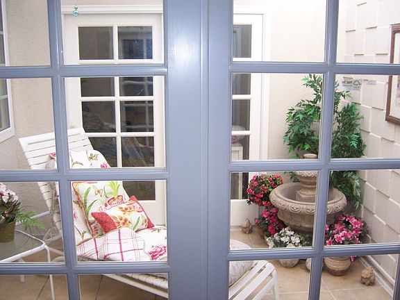 This is a charming Granada home nestled in cul de sac 16 on Calle Cadiz. Ground level entry with no steps and no home above or below. Close to the carport(54-4). This home is move in ready. Just bring your tooth brush. You enter the home in the living room which has a vaulted ceiling and a skylight. The kitchen has been remodeled and opens up to the living area. Newer cabinets and appliances. Dual pane windows throughout as well as French door sliders from guest bedroom and dining area into atrium. There is a also a French door slider from master bedroom into the gated front patio. There are dual sinks in bathroom as well as washer/dryer closet. Discover Laguna Woods Village! 7 clubhouses, 5 swimming pools, 2 fitness centers, 27 hole golf course, only 7 miles to beach.