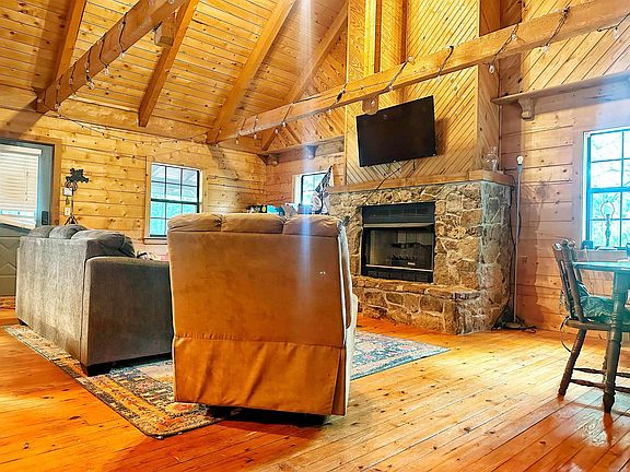 Nothing gives that cozy, peaceful vibe quite like a cabin surrounded by trees does- & there is a bonus with this one... it is near Greers Ferry Lake! Step inside and take it all in... the gorgeous lofted ceiling with beautiful beams & stone fireplace make this one a decorators delight! You have options in the 3 level layout- use the downstairs as a main suite with a bedroom, bathroom (w/ a CLAW FOOT tub) & living area OR let it serve as 2 bedrooms! On the main level you will find the living room, updated kitchen, bedroom & bathroom complete with antique porcelain sink & beautifully tiled shower! Upstairs, you'll find the loft, giving you a bird's eye view of this cabins charm! The back deck is ready for you to relax on & the tree house is ready to be filled with laughter and play!