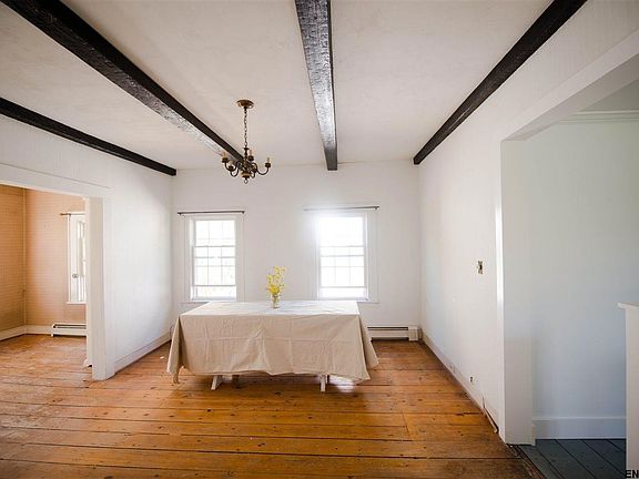 This is a wonderful old farmhouse on the outskirts of Kinderhook Village. A recently updated kitchen is perfect for those family gatherings and comes compete with a fireplace. Formal dining room, nice sunny den and a formal living room with fireplace. New full bath is also on the first floor and a mud room. Second floor has three bedrooms and a half bath. Beautiful wood floors, replacement windows, barns, shed, two car garage. East Capital District commute.