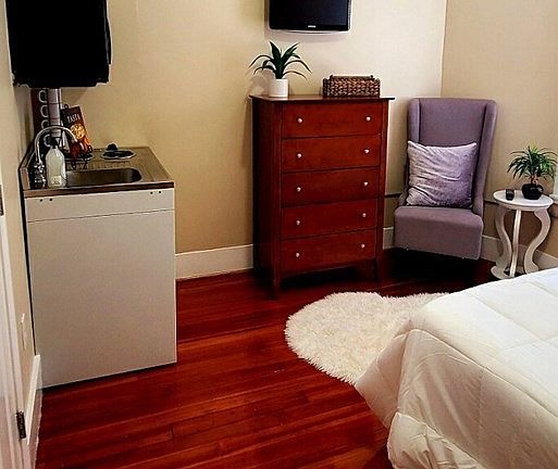 One person only~Micro Unit with private bath and small kitchenette area, includes a cook-top, microwave, sink and mini fridge. Unit has hardwood floors, central AC and coin-operated laundry onsite. Utilities included except cable and internet. There is one off street parking space included as well. Conveniently located close to public transit stops. Apartment comes partially furnished with a bed, bureau, nightstand and small television. Single Occupancy Only. 1st, last, broker fee & $150 key deposit is required for move in. Tenant to pay listing broker.