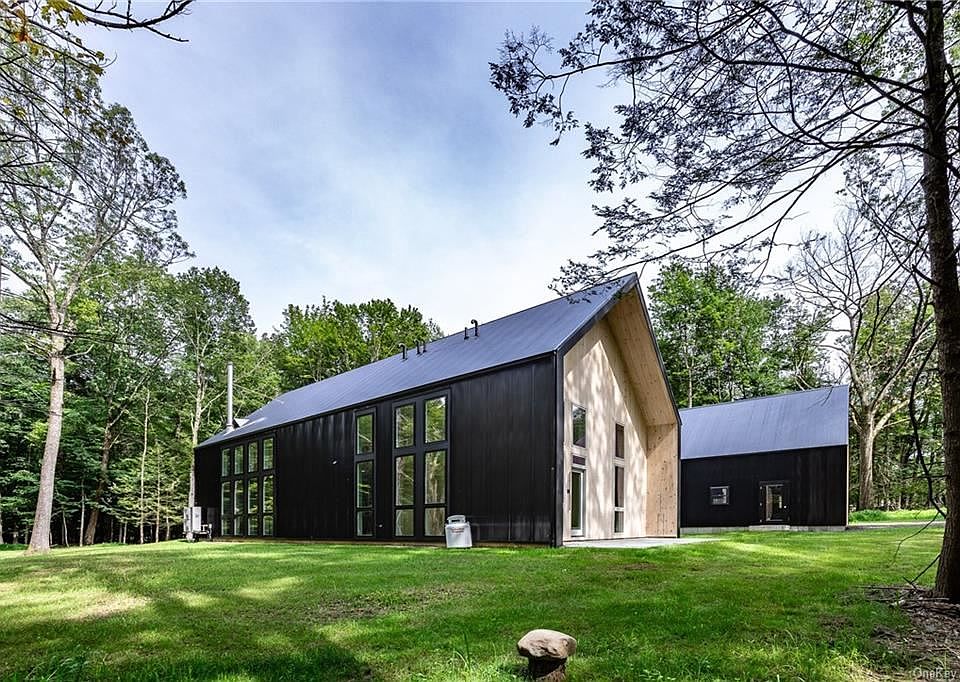 RUSTIC MODERN RETREAT Above the Clove Valley is where you will find this serene getaway where Modern meets the Mountains. Lovely lightly wooded, level landscape, with majestic trees, is set privately on a charming country lane/cul-de-sac off of one of the prettiest areas in High Falls. The address is Chestnut Hill Road, a private drive off of Rocky Hill Road that meanders to Mohonk Preserve property, overlooking the magical Clove Valley to the south and the Peterskill Valley, adjoining the State Park, to the East. There you will find your custom home built by Nevelhaus made from sustainable sourced materials. It feels refined, relaxed and upscale all at the same time. When entering the home, you will be instantly transported to memories of a treehouse set in a large clearing surrounded by forest. The walls of windows seamlessly connect the interior space to the natural setting. Light filled Great Room has a 30-foot ceiling, an expansive entertainment space, with Supreme Nova Freestanding Stove/Fireplace, adjoining the Chef's Kitchen constructed of Smoked Oak stained Custom Oak cabinets with industrial Bosch Integrated Appliances and generous Stone Island. No expense has been spared: all floors excluding Bathrooms and Mudroom are 9" wide European White Oak; Bathrooms are Radiant heated floors, Urban tiles. and Sienna stone, Kitchen and Bathroom counters are the earthy Caesarstone Rugged Concrete. Continue exploring the first floor and you will find a pantry, half bath and ensuite Primary Bedroom, terrace and Outdoor shower. The design worthy staircase will lead you to the dramatic loft with Reading Nook & Office spaces, plus two additional bedrooms and one full bath. The heating system in the rest of the house is Energy Saving VRF Ductless Minisplits. A two-story garage with loft space offers endless opportunities fora studio/workshop is seamlessly integrated with the property. You will find your new home just down the road from Mohonk trails, minutes to the charming, hip towns of High Falls, Stone Ridge and Accord, the happening venues: Arrowwood Brewery, Innes, Westwind Orchards, Jazz at Lydia's and just 15 minutes to New Paltz and the New York City bus. Here the design savvy buyer, interested in a Minimalist and Modern lifestyle, in a rustic country setting, will find their escape from cares of the world.