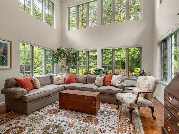A treasured English country-inspired home tucked back for privacy on a park-like setting with glorious gardens. The versatile floorplan showcases a stunning two-story fireplaced living room with an abundance of light--an open concept dining room with easy access to the appealing outdoors--a newer and impressive gourmet kitchen highlighted with a custom fireplace, white cabinetry, granite counters and expansive island plus a very functional butler's pantry--a warm and welcoming fireplaced family room with built-ins and adjacent study--and an enviable first level guest suite "ideal au pair or extended family option." The second level features a serene primary suite with peaceful views and updated bath, plus two family bedrooms with nooks and crannies and a private office or fifth bedroom. This cherished, one-of-a-kind home has timeless appeal and has been meticulously maintained and updated and located in a coveted area convenient to schools, shops and commuter routes!