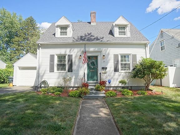 Beautiful cape located in desirable East Forest Park. Newer kitchen from 2018 with updated cabinets, flooring, granite counters and tile backsplash. Large living room with built in desk, bookshelves and wood fireplace. Formal dining area with two oval built ins. Lots of hardwood floors through living room, dining room and bedrooms. Conveniently located half bathroom on first floor. Second floor full bath features tile floor, half tiled walls and pedestal sink. Large primary bedroom with two closets and ceiling fan. Second bedroom also has two closets. Partially finished basement provides additional living space. Versatile sunroom located off of the living room with wood ceiling, fan and exterior access to patio area. Large fenced in yard and a garage. Home is well maintained with tons of updates! Roof 2017. Gas hot water 2018. Mass Save insulated 2019. Vinyl siding. Replacement windows. Gas heat. Circuit breakers. Short commute to area amenities including restaurants and shops.