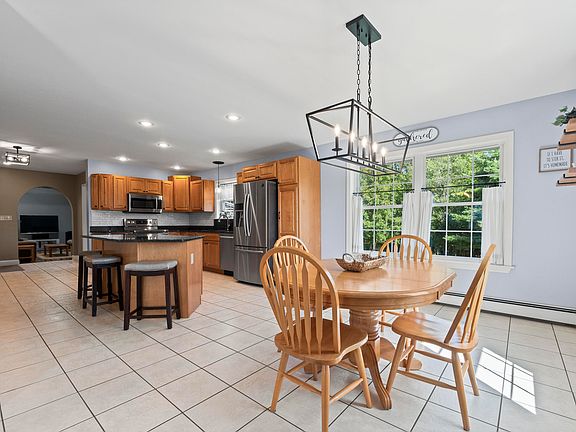 TURNER COLONIAL---This impressive 4 bedroom , 2.5 bath home features a spacious entry with hardwood floors leading into an open kitchen with granite counter tops, stainless steel appliances, large island and sunny eating area. Livingroom with pellet stove along with a familyroom with vaulted ceiling, another pellet stove and slider leading to a 3-season room overlooking the private back yard with patio and firepit. Second level offers a primary bedroom with a full bath and large walk-in closet. The 4th bedroom over the garage would be ideal as a bonus room or large office space. Partially finished game room in the lower level offers a walk out, daylight basement. 2 car attached garage with new generator hook-up in 2023 and a separate 14' x 28' detached 3rd garage for additional storage. NEW BIASTI boiler installed in 2024, keyless entry doors, easy access to schools and golf course. Don't miss this opportunity to make this house your new home.