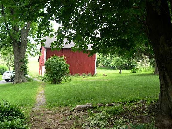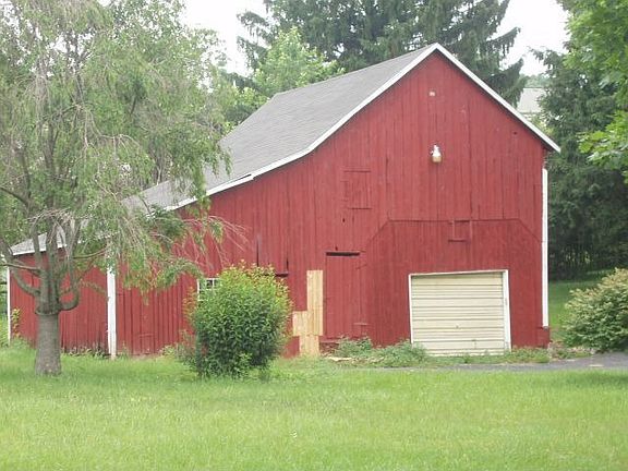 True Exposed Log Home remodeled farm house with new furnace, new water heater, new central air, new stainless steel appliances, newly lacquered wide varied plank floors, exposed brick and exposed log beams, exposed beam ceilings, newly finished 3rd floor, barn, stone spring house and stone foundation equipment shed! All newly painted, all brand new 'the new shag' carpeting, all new full tiled master bath, all new family bath, all new 2nd floor tiled laundry and all new finished 3rd floor! Buyer of this fine estate will receive the first right of refusal for the 2 1/2 acre lots to the left of the barn - each of which will sell for $45,000.Side Foyer: 7 x 11.9 This side entry foyer features wide plank wood floors which have just been lacquered, a side entry closet, high baseboard moldings, a transom above the 6 panel solid wood door with a dead bolt and original door hardware with a new deadbolt. This foyer area leads to the Dining room, the living room, the family room and the staircase to the 2nd floor.Kitchen: 11.9 x 14 This completely remodeled kitchen is stunning. From the brand new beautiful marble counter tops with a deep double bowl stainless steel sink with an upgraded brushed pewter extendable faucet, to the brand new Frigidaire stainless steel Refrigerator, stainless steel dishwasher, a stainless steel Frigidaire microwave and a stainless steel Frigidaire gas stove brand new chandelier and brand new track lighting on the ceiling and a wall phone jack. The natural wide plank wood floors and the handmade rough American Chestnut cabinets with to period hardware have just been lacquered and are stunning along with the lacquered rough strewn half wall with chair railing. This kitchen has a pantry closet, an access panel to the attic space above, 2 replacement vinyl, double hung dual pane windows with locks and screens, a steel insulated 9 panel front door and direct access to the family room.Family Room: 13.4 x 22 This wonderful family room is located centrally in the home and features brand new 'the new shag' neutral carpeting, exposed wooden beamed ceilings, exposed squared beams wall, and exposed brick wall, a painted white brick raised hearth and fireplace with wood storage and a wood stove, a French door with a dead bolt which leads to the side yard, 4 wall mounted brand new pewter light fixtures, access to the 2nd staircase which leads to the master bedroom on the 2nd floor, access to the front staircase to the second floor, and access to the side foyer which leads to the guest coat closet and the large dining room. This room also leads to the brand new full bath.Full Bath: 5.1 x 7.1 This brand new full bath has brand new neutral tile flooring, a white fiberglass shower with 2 molded seats, a crank out dual pane window, a new pedestal sink, a new commode , a ceiling light and exhaust fan in the shower, a medicine cabinet and mirror and a new wall mounted light fixture above. This room has been freshly painted with freshly painted trim, walls and ceilings and brand new brushed nickel hardware.Dining Room: 13.5 x 15 This large & bright DR is located at the front of the home & has a beautiful view of the pond across College Ave along with a view under the full wrap around wide front porch. This room has wide plank lacquered floors, high baseboards, a new pewter chandelier, 2 white vinyl double hung, dual pane dual locking windows which tilt-in & have screens; there%u2019s a large glass & 2 panel solid wood door to the full wrap around front porch w/a dead bolt, a door w/a dead bolt leads to the dirt floored bsmt, access to the foyer & access to the LR. This room also boasts a new digital thermostat, 2 built-in hand made China cabinets, chair railings & a triple light transom above the front door.Living Room: 10.8 x 20.6 This wide and spacious living room has 3 white vinyl double hung, dual pane dual locking windows which tilt-in and have screens, an additional entry closet wit