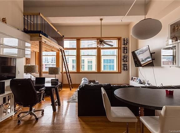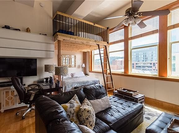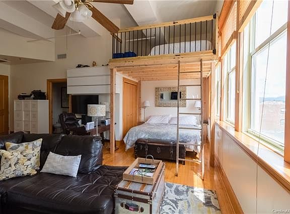 Beautiful "Old World Style" Loft in the heart of Asheville. Light and Bright East facing condo with large oversized windows. Low HOA fees and Taxes. Lovely common rooftop terrace with gorgeous views of the city and mountains beyond. Lower level secure storage locker included.
