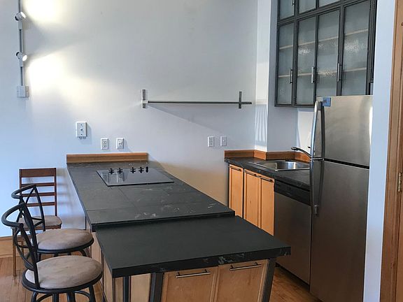 Historic Condo available in the Kress Building Downtown Asheville. Original hardwood floors, 16 ft. ceilings, custom kitchen, big windows, lots of light, shared roof access, and washer/dryer. Tennent responsible for power and cable.
