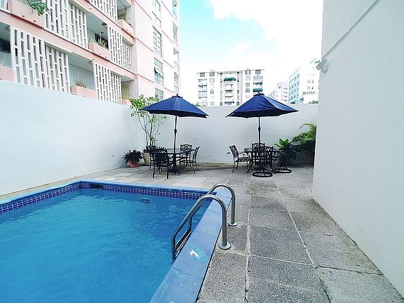 LOCATION! LOCATION! LOCATION! UPDATED LARGE 2 BEDROOM (ORIG. 3 BD) AND 2 BATH IN THE CENTER OF TOURISTY CONDADO.ONE BLOCK FROM THE OCEAN AND CENTRALLY LOCATED TO HOTELS, RESTAURANTS, TRANSPORTATION, AND HOSPITALS. THE BOUTIQUE TYPE CONDO IS BETWEEN HISTORIC OLD SAN JUAN AND AIRPORT. CONDO IS EQUIPPED WITH EUROPEAN STORM SHUTTERS, FRIDGE, STOVE, DISHWASHER, AND MICROWAVE. LARGE MASTER WITH A JETTED TUB AND HAS HUGE CLOSET'S THRU-OUT. THE BALCONY HAS OCEAN VIEWS AND A SEPARATE PRIVATE LAUNDRY ROOM. IT'S A TOP FLOOR WITH OCEAN VIEWS FROM EVERY ROOM AND VERY PRIVATE 2 APTS. PER FLOOR. COVERED PARKING. OUTDOOR POOL AND GRILL AREA.AVAILABLE FURNISHED OR UNFURNISHEDPLEASE CALL TO SET UP APPT. FOR SALE BY OWNER.516-477-9843