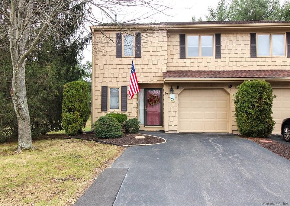 Fabulous end unit that's priced to sell! Interior walls & ceilings recently painted a neutral color and carpets cleaned. Beautiful, remodeled eat-in kitchen with vaulted ceiling & SS appliances. Vaulted ceiling dining area with skylight above that overlooks corner fireplace living room. Half bath on first floor. Second floor offers Master bedroom w/full bath, laundry, second bedroom and full bath. New gas furnace & A/C! Drive in your garage and enter easily into your foyer! Centrally located with ease to all major highways, AMTRAK, Bradley International Airport, and shopping/dining! A MUST SEE!