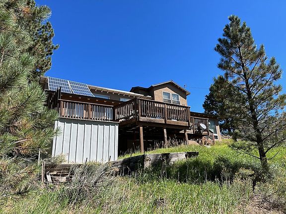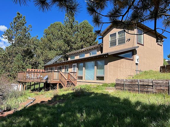 REDUCED! NO RESORT DUES! BUT VERY CLOSE TO ANGEL FIRE RESORT......This is a rare opportunity to get a house of this quality just outside of the city limits of Angel Fire in the subdivision of Val Verde. No resort dues on this property! Just beyond the Memorial, this is an easy find unit just off the pavement. Super 3 bedroom, 2 bath home located on just under an acre of land with panoramic views to the south. This house is all about the view.....Tons of windows are on the south side of the house making this home really light and bright year round. Lots of passive solar gain in this property. The home has two spacious living areas with vaulted ceilings. One is set up with a big screen TV and a solid glass wall of windows to take in the view. With an open floor plan, this house is great for entertaining. The spacious deck on the south side of the house has room for a large gathering. Beautifully remodeled bathrooms are a bonus here. The spacious master suite is private on the second floor with room for a seating area as well as office space and a walk in closet. Lots of storage and oversized closets in this home plus a storage building out back. Move in ready, this fully furnished home is ready to enjoy the snow on the pine trees just outside your windows. This would make a great income property!