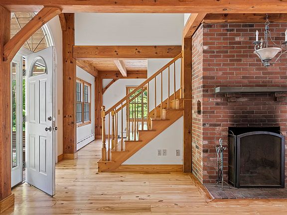 Imagine this: After a long day on the slopes, a short 4-minute drive will lead you home to beams of comfort and relaxation. If you have been looking for a property at the base of Ragged Mountain, or just a quiet spot in the country – look no further! This stunning 3 BR 2.5 bath Post & Beam cape awaits you and your guests. Nestled on a beautifully wooded 5-acre lot, a covered porch provides entry inside to gleaming hardwood floors, generously sized rooms, tongue & groove ceilings, a warm & inviting fireplace in the living room area and an abundance of cabinet and counter space in the country kitchen. Need more space? Bring your creative ideas to the finished lower level, which offers a laundry nook, ceramic tile flooring, a ¾ bath, wood stove & walk-out access to the private back yard. The back yard can also be enjoyed from above, where a new deck exits from sliding glass doors off of the living room space. A great primary residence, Airbnb, ski house, or private country getaway. Make the updates of your choosing and start enjoying all that Danbury, NH has to offer. Property is being conveyed in as-is condition.