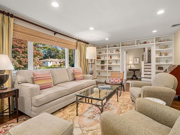 OPEN HOUSES CANCELLED! OFFER ACCEPTED Modern comfort meets timeless design in this impeccably maintained mid-century home, perfectly sited on lush, newly landscaped grounds. Step inside to a bright, airy foyer that opens to a dramatic great room with vaulted ceilings and sliding doors overlooking the private deck and stone patio. The open-concept kitchen is a showpiece—ideal for both everyday living and effortless entertaining—flowing seamlessly into the dining room and elegant living space with fireplace and custom built-ins. Upstairs, the serene primary suite offers a private retreat with an updated en-suite bath. Two additional bedrooms share a stylish modern bathroom. The lower level provides exceptional flexibility with a bright corner office or bedroom and a spacious bonus area perfect for a gym, playroom, or creative studio.