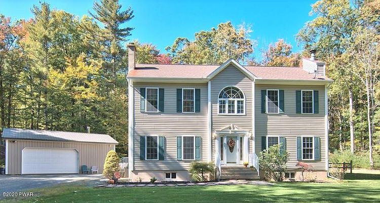 Amazing Center Hall Colonial Home close to Lake Wallenpaupack! This beautifully updated home that looks brand new features 4 bedrooms and 3 bathrooms. Enough room for the whole family and there is even room to grow with a partially finished lower level. The homes is surrounded by a beautiful level lot that will make you fall in love with nature. Community also allows pools! Patio and fenced in area adorned by beautiful trees and endless beauty. Updated granite kitchen with a center Island, family room, formal living room and dining room! You and your family can have endless memories in this home and share with family and friends. Close to the big lake and near a few marinas to get a boat slip. Area is close to restaurants and stores. Check it out you won't be disappointed!!