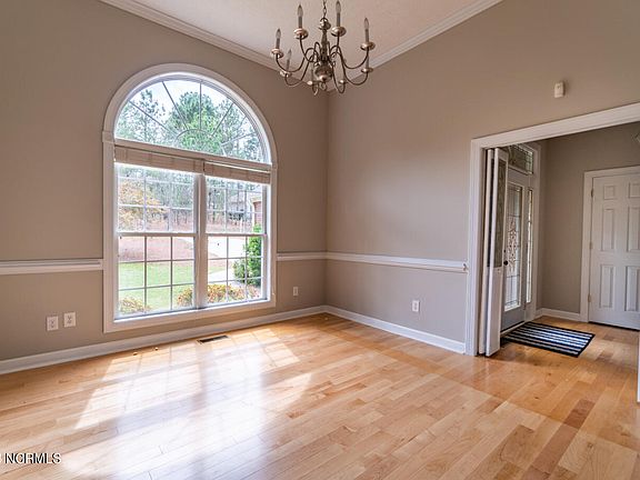 PRICE REDUCED $15K! Lovely waterfront home with fresh paint throughout at popular Pinehurst No. 6. Vaulted great room, split bedroom plan, sunny Carolina room with mini-split and heated tile floor. Eat-in kitchen is also vaulted and has a bar and 2 pantries. Formal dining room (just remove doors) which can also be used as a home office. Water views from all main living areas. Maple floors in living, dining room/home office. Gas log fireplace, sealed crawlspace with dehumidifier and walk-in area under home that has full height door for great storage. New heat pump in 2022 with humidifier. Ramp in garage. irrigation from lake/pond. Security system.