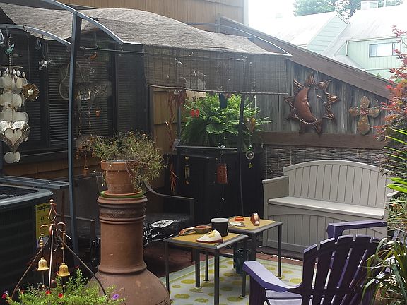 First floor living at it's finest. Welcome home to this immaculate ranch style condo. Nothing to do but unpack your bags. Enter this home to the beautiful living room with laminate floors, vaulted ceilings and vent-less gel fireplace. The updated kitchen features ceramic tile, granite counters, under cabinet lighting,dishwasher and a breakfast bar. The dining room offers a built in buffet, recessed lighting and plenty of room for entertaining. The master bedroom is over sized and features laminate floors, his and hers spacious closets, another fireplace and an updated full bathroom. The second bedroom is currently being used as a den and offers laminate floors. Off the dining room are sliding doors leading to the extra long patio, with grill and patio furniture included and backs to woods to offer privacy and peace. This affordable home features an updated HVAC system, newer appliances, and the roof was just replaced. Easily accessible additional storage space in the attic. Georgetown is an adorable community close to transportation, shopping, restaurants, and major highways. The master bedroom can be easily converted back to the original 2 bedrooms if the buyer prefers, which would offer 2 bedrooms and a den.