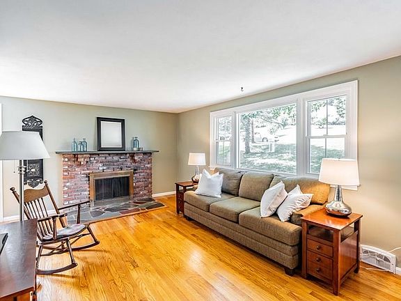 This wonderful cape features 4 bedrooms, 2 1/2 bathrooms, lots of Hardwoods, a walk out basement facing wooded conservation land. The focal point of the living room is the wood burning fireplace (chimney re-pointed and cap 2019) . The dining room off the living room is bright and sunny and exits to the patio 2018, perfect for enjoying your morning coffee. The kitchen has a Bosch dishwasher and pantry cabinet. Down the hall is a full bath with Tub/shower w/ glass doors and a linen closet. The master bedroom has a double closet and can accommodate a king size bed. The other bedroom on this floor is currently being used as an office. The 2 upstairs bedrooms are large, have been freshly painted and have built-ins and a cedar walk-in closet. Between the 2 bedrooms there is another full bath with tub/shower w/glass doors and a large vanity. The walk out basement is home to a large rec room, 1/2 bath, workout room and the laundry, and walks out to a 2nd patio. Furnace-2007, roof/windows-2010