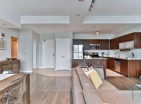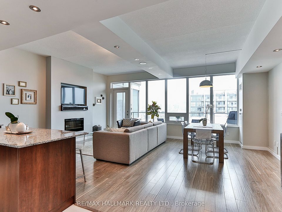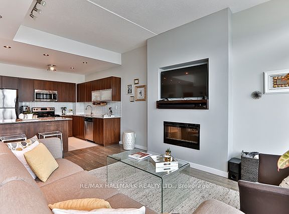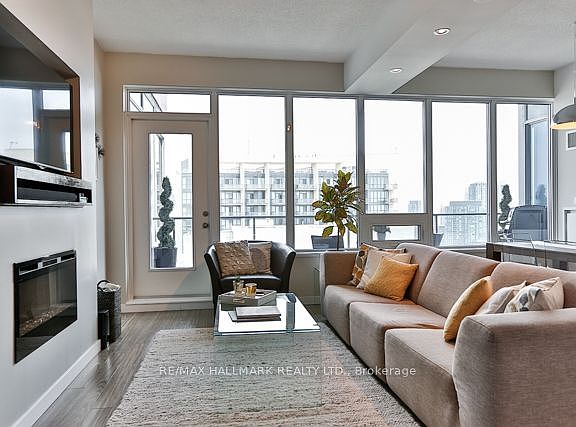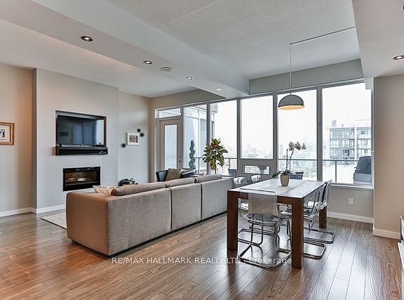 Rarely available, stunning penthouse with dynamite view seeking new responsible, professional inhabiter who appreciates style, space and fantastic natural light. With 1,200 sq. ft. of total indoor/outdoor living space at your disposal, the possibilities are truly endless. The open, expansive layout is as perfect and versatile for entertaining as it is for relaxing and re-charging. A spacious terrace with breathtaking views of Toronto's cityscape is sure to induce envy amongst your friends and we won't apologize for it. Added bonuses include modern finishes throughout, an electric fireplace and a built-in desk in the den that converts to a Murphy bed to accommodate guests and of course the clincher - 10 Ft. ceilings. Incredible area amenities, door-step access to Transit and proximity to some of Toronto's best shopping, restaurants and nightlife are the sizzle to your everyday living steak. Life hits different on the Penthouse my friends, let's see if you're the right match!