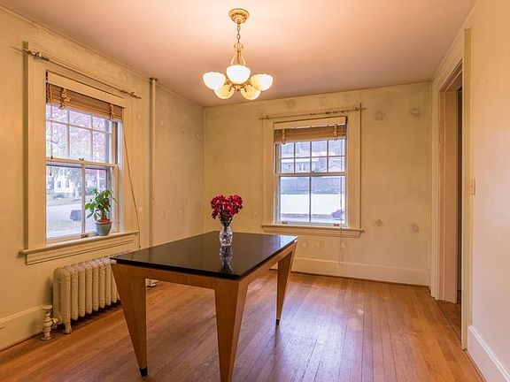 This adorable 2 bedroom home welcomes you from the moment you walk through the front door. First floor has charming eat-in kitchen as well as formal dining room with built-in china cabinet and fireplaced living room. Second floor has 2 bedrooms and full bath. Located on a dead end street and convenient to local schools, restaurants, area amenities and major routes. Some of the bonuses include solid wood doors with brass handles, unique wood detail throughout, hardwood floors,potential for partially finished basement, manageable sized yard and detached garage.
