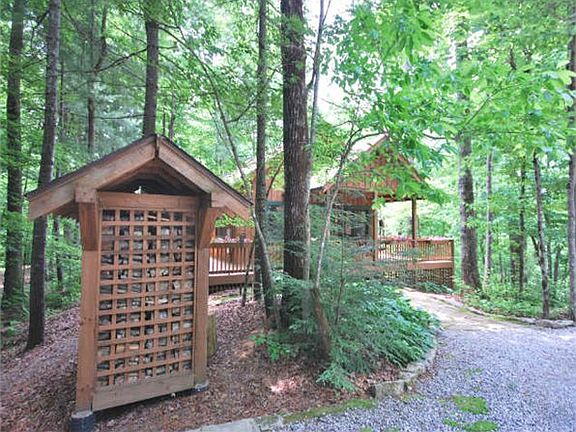 -Fairy-tale, picturesque main house with 3 bedroom space and separate guest cottage nestled among verdant old growth in safe, gated setting. All-season porches offer tranquility & comfort; 270 degree kitchen invites outside in; 3-car garage offers workshop-hobby flexibility. A cool summer escape, vibrant fall colors, mild winters, and no grass to cut. Countryside living a relaxing 20 minutes from downtown Brevard.