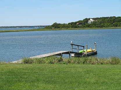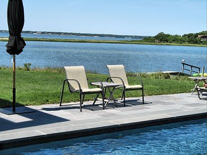Enjoy beautiful bay views from the porches and pool of this three-bedroom, two and one half-bath Traditional home in Shinnecock Hills. With its broad vista, waterside gunite pool and dock, you are ready for a summer of sun, sand, water and fun.