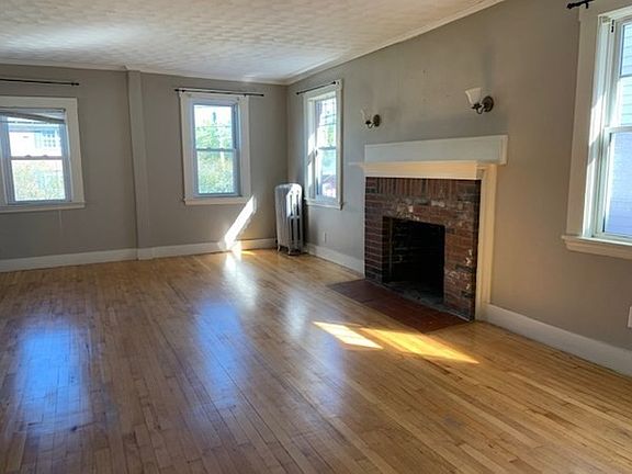 Second Floor; Light and Bright with plenty of windows...Two Bedroom Apartment Available! Living room with hardwood floors and pretty fireplace (not to be used for burning wood). Spacious eat in kitchen with plenty of cabinets and parquet floor. Two bedrooms, one with hardwood floor and the other with parquet floor. Tiled full bathroom and coin-op washer/dryer in basement for shared tenant use.1600.00 Monthly, utilities not included (tenant responsible for gas heat, hot water, electric and cable). Great location, close to square, bus line and major routes. Two assigned parking spots. Credit report to be pulled, First and Last months rent to be collected. NO PETS~NO SMOKING!