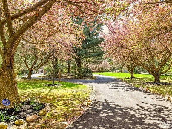 Stunning 5 bedroom, 2.5 bath beautifully maintained ranch style on a quiet 3-acre lot and surrounded by trees and sweeping lawns located in South Brunswick. Features: gorgeous hardwood flooring; welcoming foyer, bright and airy formal dining room; living room with a dramatic floor to ceiling stone fireplace; eat in kitchen with large quartz top center island and counter tops, lots of cabinets, stainless steel appliances, recessed lighting, delightful breakfast bar; a staircase leads to an loft; convenient laundry room with sink and powder room complete the main level. Primary suite with lavish full bath; 3 additional bedrooms share a full hallway bathroom. Enjoy the additional space in the full sized basement. Enjoy backyard with deck overlooking the in-ground pool and pond. Additional features: 2.5 car garages with garage door opener and one car detached garage; circular driveway; professional landscaping; deck. Private location yet conveniently located near bus stop, shopping, restaurants and top-rated South Brunswick schools and more!