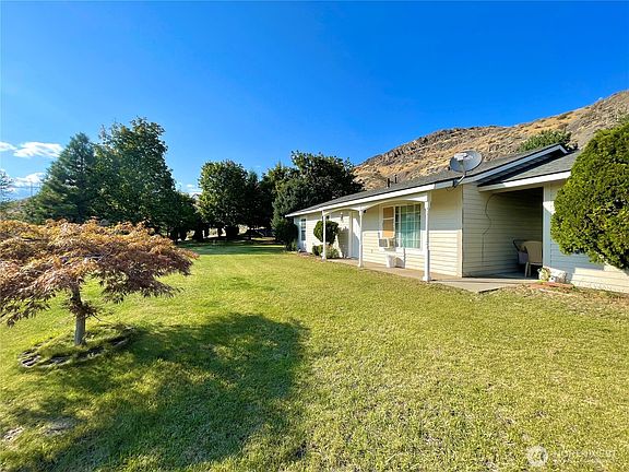 3.5+ ACRES OF SECLUSION IN OMAK - This charming 3 bed, 1.5 bath home offers space, privacy, and room to roam. Spacious kitchen with all appliances, propane stove, breakfast bar and dining area with sliding doors to patio access. Relax in the living room with stunning panoramic views and backyard access. The primary bedroom includes a convenient half bath. Enjoy mature landscaping, shade trees and vibrant perennials; perfect for outdoor entertaining. Plenty of parking for guests, RVs, or toys. Includes a 288 sf attached carport w/storage closet & a 720 sf powered garage w/a bonus room. Quiet rural setting just minutes from town. Community well. Okanogan Irrigation District. Septic. A true retreat with all the conveniences nearby.