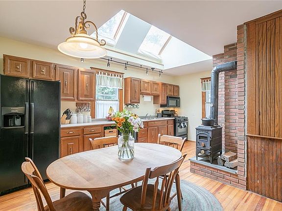 - Additional Interior Features: Ceiling Fan, Circuit Breakers - Some, Copper Plumbing - Some, Natural Woodwork - some, Skylight, Drapes - Some, Security System - Owned