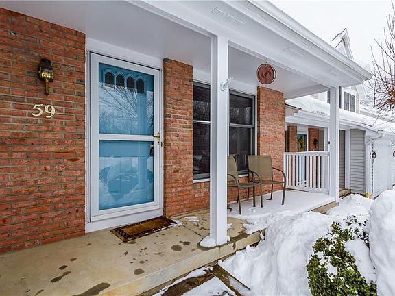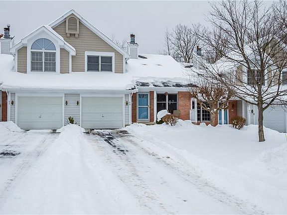 Charming & modern 1,139sqft townhouse in Riverview Townhomes Community! The living room, featuring gleaming hardwood flooring, cathedral ceilings & skylights, houses a wood-burning fireplace! Well-lit eat-in kitchen features walk in pantry and sliding glass door to backyard! First floor half-bath! The upstairs houses two large bedrooms! The master houses a spacious walk-in closet! The full & partially finished basement houses laundry and offers additional space for a potential work-shop or additional storage! HOA handles all exterior building maintenance including snow removal! The exterior boasts an attached 1 car garage situated on quiet cul-de-sac. Convenient to the 390!
