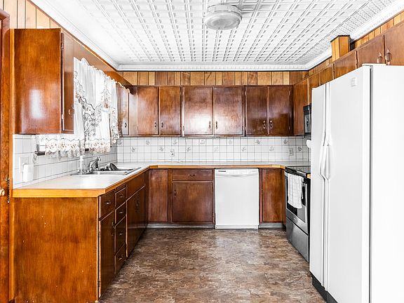 As you step inside, you'll be greeted by authentic metal ceilings that add a touch of vintage elegance. The well-maintained property comes complete with a convenient carport for one car and two sheds offering ample storage space for your needs.