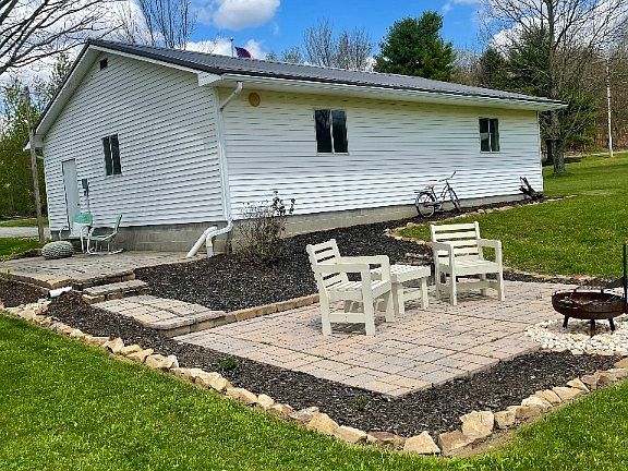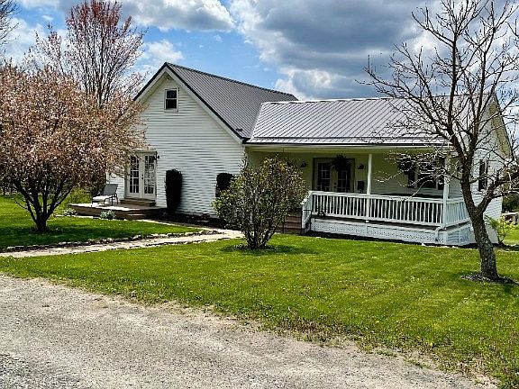 Three to four bedroom newly updated home sitting on one acre on low traffic road. Main level has large bedroom, full bath, and additional office/bedroom with a laundry area in the closet. The upper level consists of two cozy smaller bedrooms. The half bath is located in the basement with large area for a workshop and second garage. New metal roof was installed on house and garage in 2023.