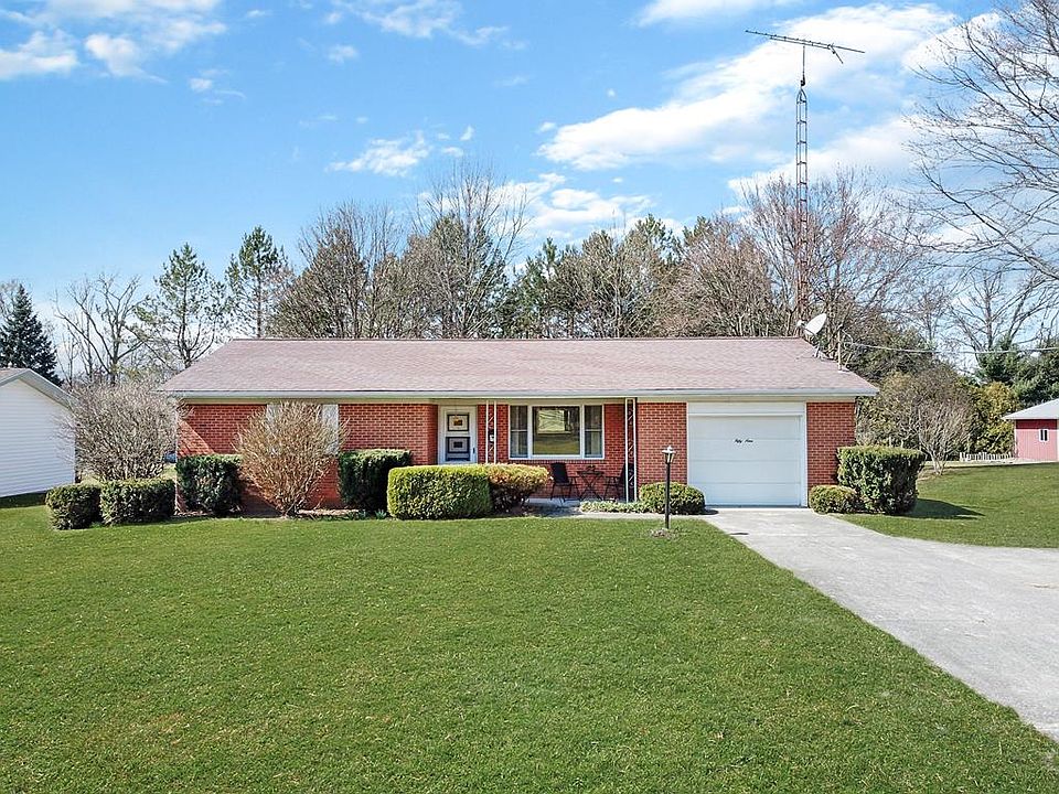 Minimalist lifestyle? DON'T MISS this lovely brick ranch home in a quiet tucked-away neighborhood that is also very close to services! This home maximizes on one-floor living and is completely move-in ready. A cozy covered front porch guides you through the front door and into the main living room of this charming home, featuring a large bay window and an alcove for a television or book collection. Featuring two spacious bedrooms, bathroom, laundry and bonus carpeted area in the back that could be an office or extra bedroom, and an eat-in kitchen in the center of the floorpan with fantastic built-ins throughout! All appliances stay. Call today to schedule a showing!